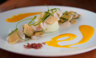 Swift\’s Attic is not sushi nor Japanese fare but they do serve one of my favorite raw dishes. The Maine raw diver scallops tiradito is simply divine. Delicate raw diver scallops are placed upon a light cucumber sorbet. The flavors are complimented with Himalayan sea salts and the plate is drizzled with aji amarillo.