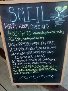 Soleil launched a new happy hour that runs all day Sundays and Tuesdays and 4pm-7pm Wednesdays-Saturdays.