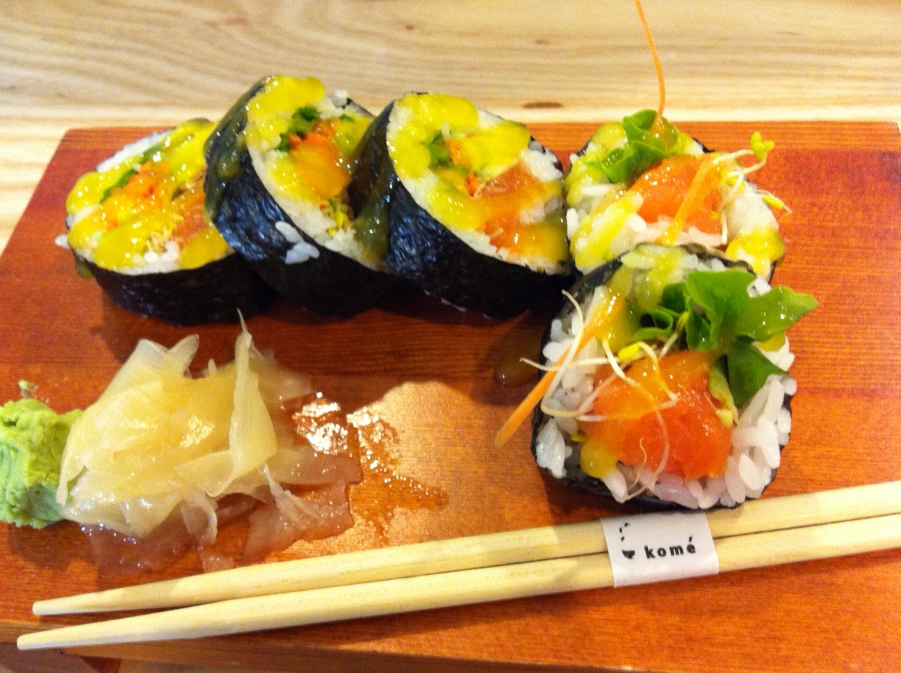 Chefs Kayo and Takehiro owned the former Sushi-A-Go-Go trailers. You can find most if not all of their beloved Sushi-A-Go-Go rolls rolls on Kome\’s sushi menu.