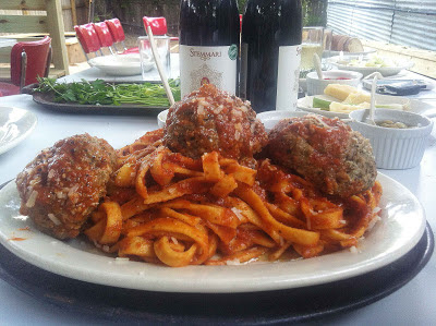 Patrizi\’s Red Sauce is a rich tomato sauce and the generously portioned and moist meatballs are 75/25 beef.