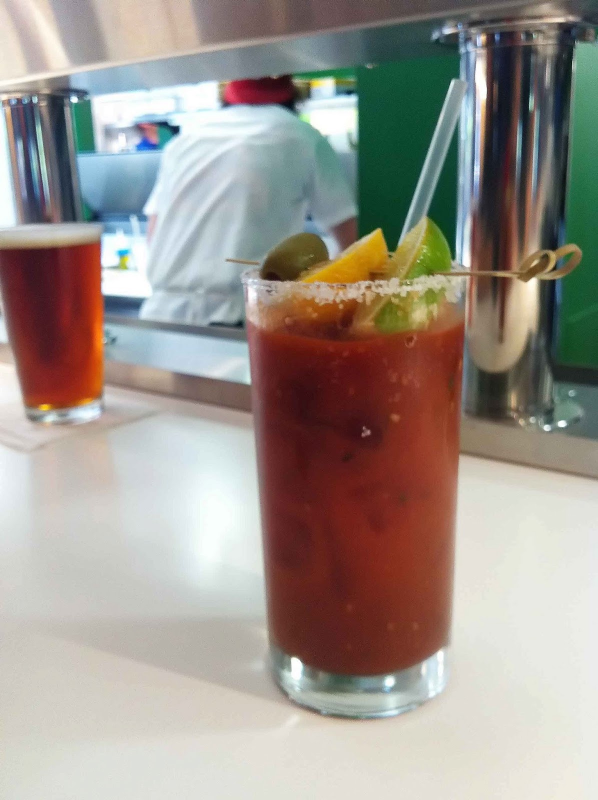 I love a good spicy bloody Mary so when I read the description for Umami Mia\’s Bloody Caesar I was intrigued. This bloody is made with Tito\’s vodka, Clamato juice, Umami tomato sauce, lime juice, cracked pepper, Sriracha and wasabi sauce. While the Sriracha and wasabi add some spice and heat to the drink it is offset by the sweetness of the Umami tomato sauce.