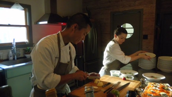 The open kitchen allows guests to watch the chefs in action as they prepare dishes. I attended the Japanese Kaiseki dinner which is a traditional multi-course dinner.  This evening\’s dinner was prepared by the skillful and creative Chef Jay Huang, formerly of Uchi and Trace.
