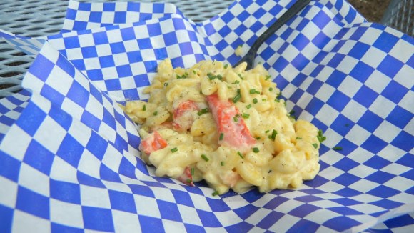 If you haven\’t tried Dock & Roll you are missing out. They serve an impressive signature \”Maine Event\” lobster roll that can be ordered 7 different ways along with other tasty central Texas themed sandwiches. Today I indulged in their delicious creamy mac n cheese with succulent pieces of lobster.