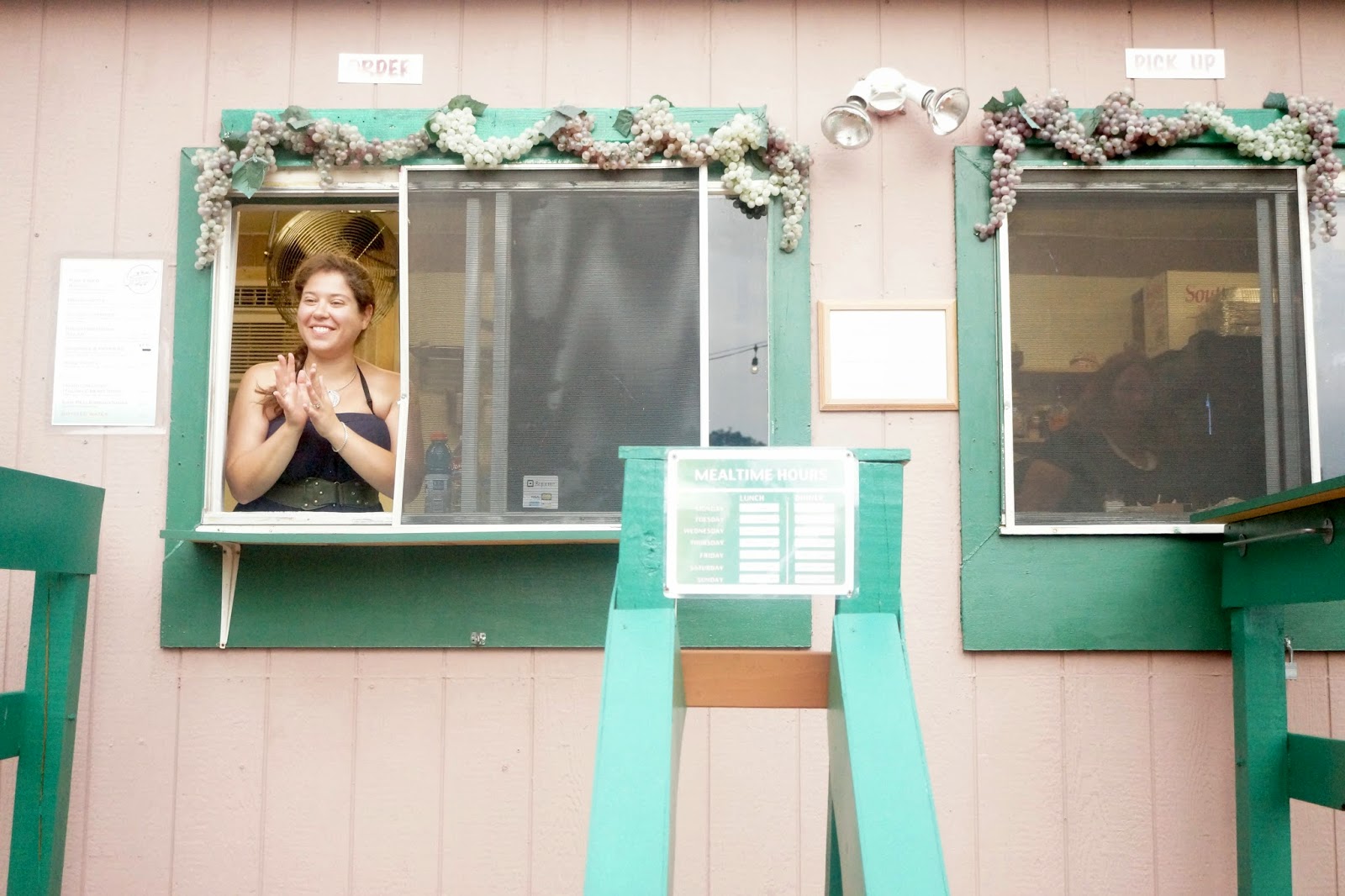 For the main course we had our choice of chicken Parmesan or eggplant Parmesan. While I do enjoy eggplant I opted for the protein. They kindly brought our meal out boxed up as the sprinkles quickly turned into rain yet most of us stuck it out as the rain only added to the ambiance. The firm chicken Parmesan was balanced nicely by the marinara sauce.