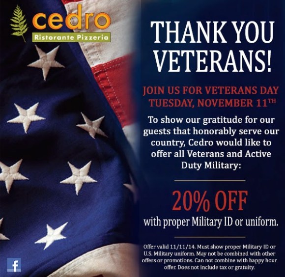 Hello fellow veterans! Here is a round up of places in the Austin area offering dining specials to veterans and active duty military members on Veterans Day. Thank you for your service and I hope you have an amazing day!