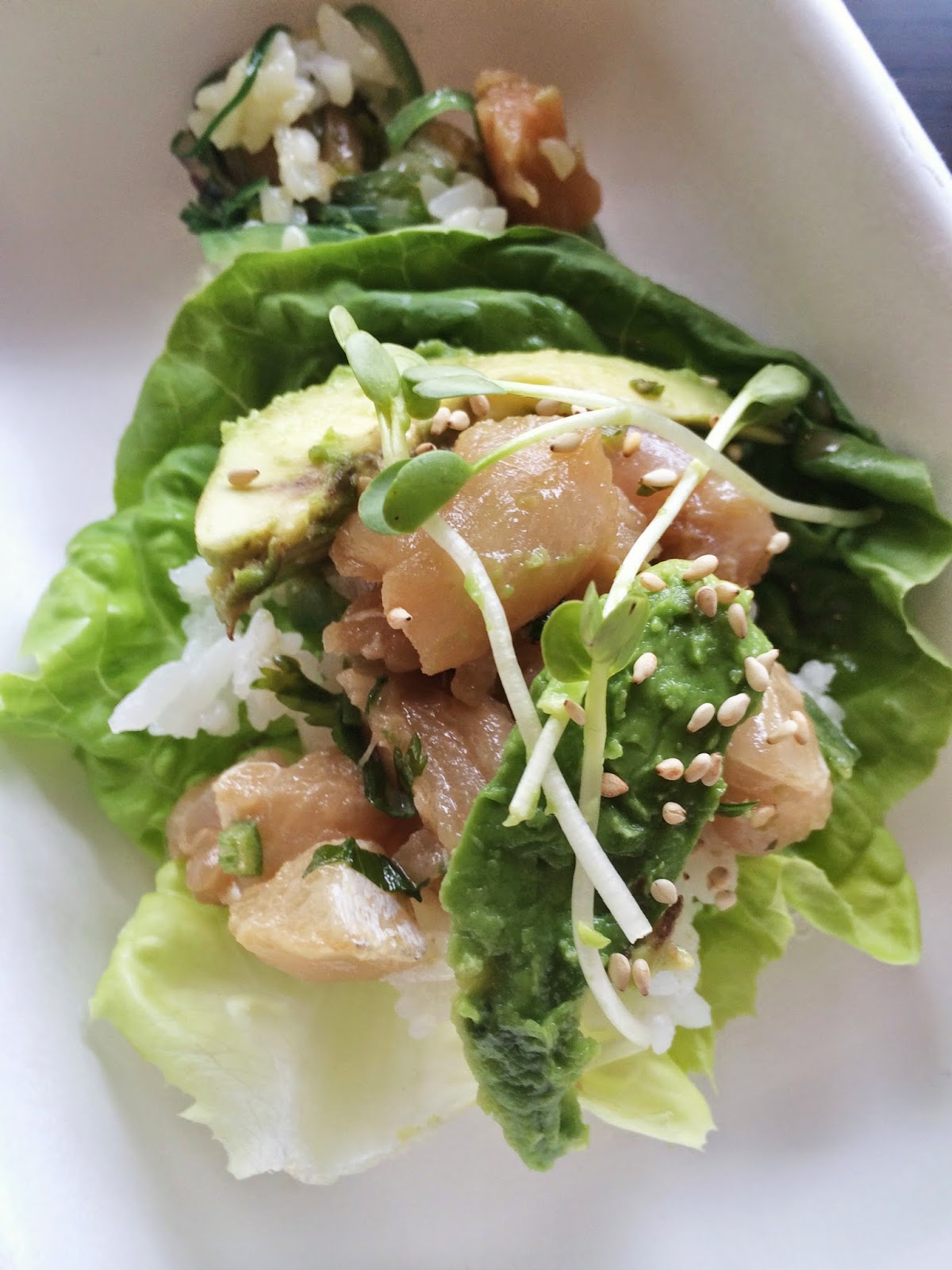 The Salmon Poke is a Hawaiian inspired dish with fresh salmon and a delightful mix of red onions, lettuce, edamame and fresh sprouts with your choice of rice. This simple yet delicious blend of ingredients packs some punch.