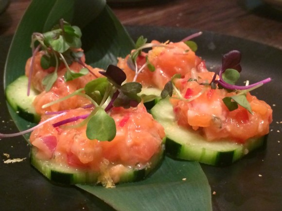 Chef\’s take on the salmon tar-tar was light and refreshing. The tar-tar had bell peppers and onions which gave it texture and lemon zest and cucumber chips brightened the flavor profile.