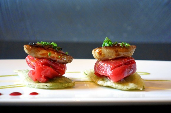 Another fairly new menu item is the foie grois tuna. The dish has tempura vegetable chips topped with richly flavored tuna and lightly fried foie grois. The dish is incredibly decadent.