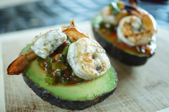The shrimp avocado bowl encompasses ingredients I love. The creamy avocado half is filled to the brim with Malaysian chili sauce and topped with perfectly cooked shrimp.