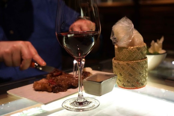 Kuay tiao ruea was a crowd favorite! This incredible dish has boat noodles, savory spiced pork \”5-ways\” and paired impecably with a 2012 Charles Jogue \”Les Charmes\”, Chinon, France.