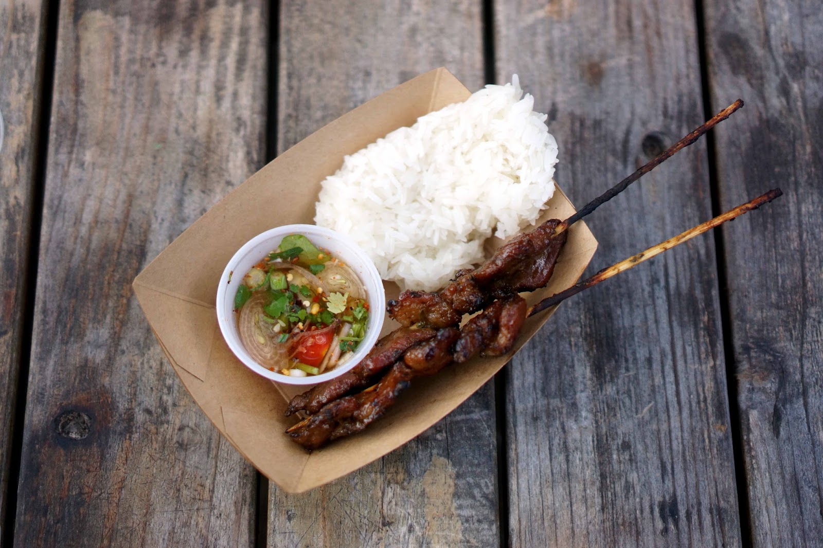 We started off our exceptional culinary experience with Moo Ping which was absolutely a crowd favorite! Customers have their choice of either 2 or 5 perfectly marinated, mildly sweet pork skewers with a side of perfectly cooked sticky rice and spicy fish sauce. Trust me, go with the 5 skewers because 2 will just leave you wanting for more.