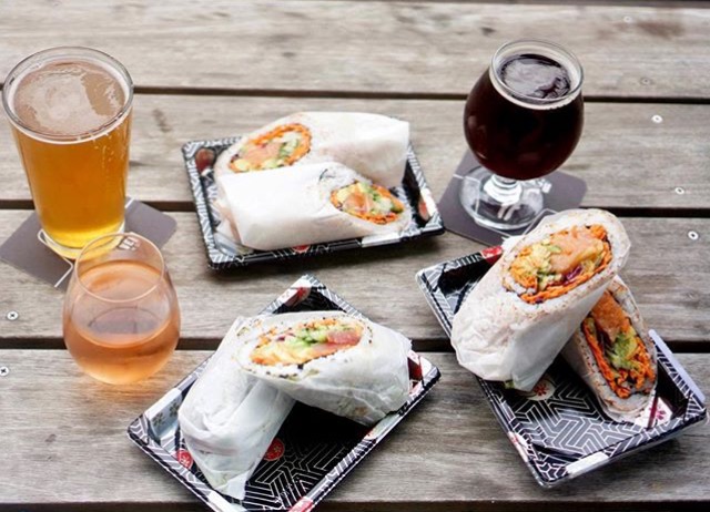 | Our Sushi Burritos, Wine and Beer Spread at Whole Foods Market |