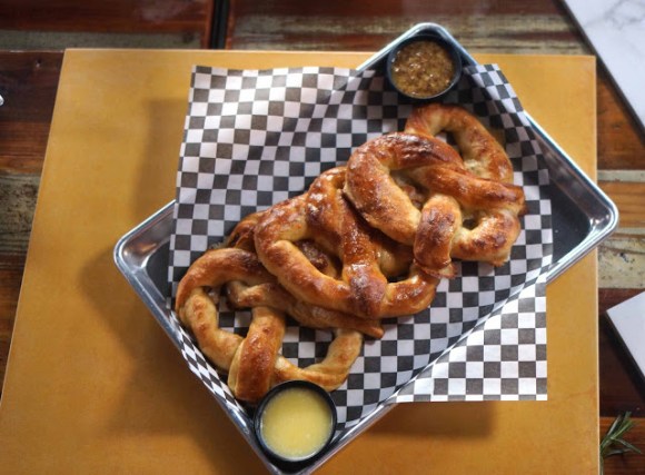 We started off with a variety of appetizers to include a variety of Wings and Stuffed Pretzels. The finger-licking wings were served with sauces that complimented the each flavor perfectly. I swooned over the doughy pretzels stuffed with crisp bacon and gooey cheese.