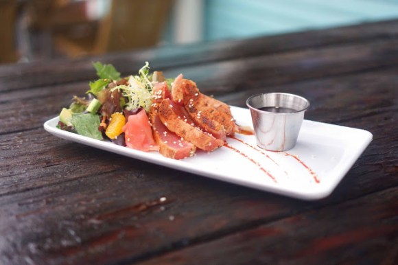 The Tuna Tacos with a corn slaw and fresh avocado are on point.