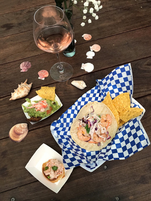 | Guac Lobster, Crab Bruschetta and Grilled Shrimp Taco at Dock & Roll |