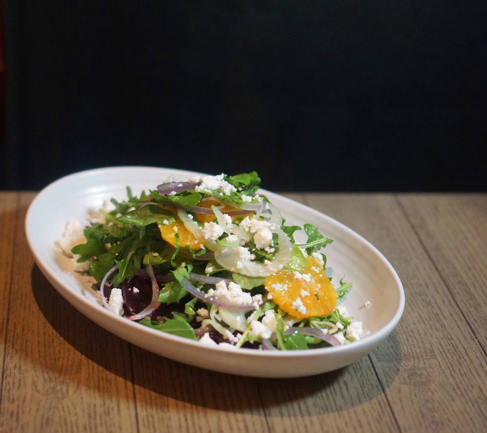 The Roasted Beets Salad is the perfect accompaniment to any meal. The salad is the perfect blend of fresh greens, roasted orange, fennel, red onion, rucola, creamy feta with an invigorating citrus vinaigrette.