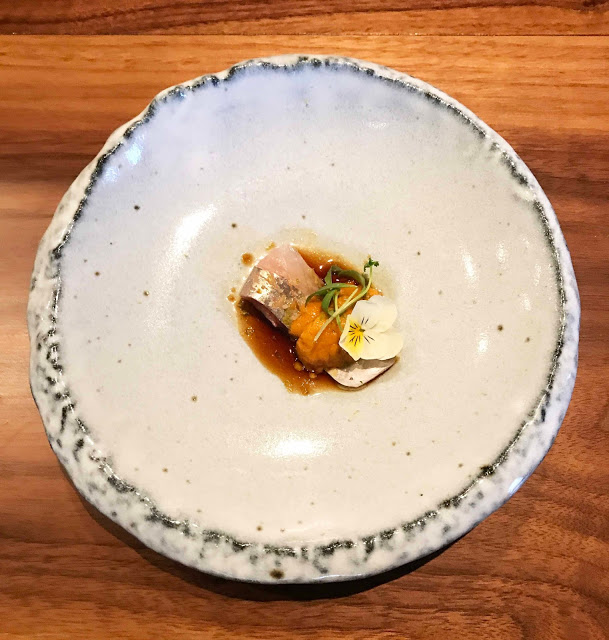 The first enchanting sushi dish I tried was the Shima Aji. This exquisite dish has a tender cut of shima aji paired beautifully with California Uni in a yuzu shoyu and micro cilantro.