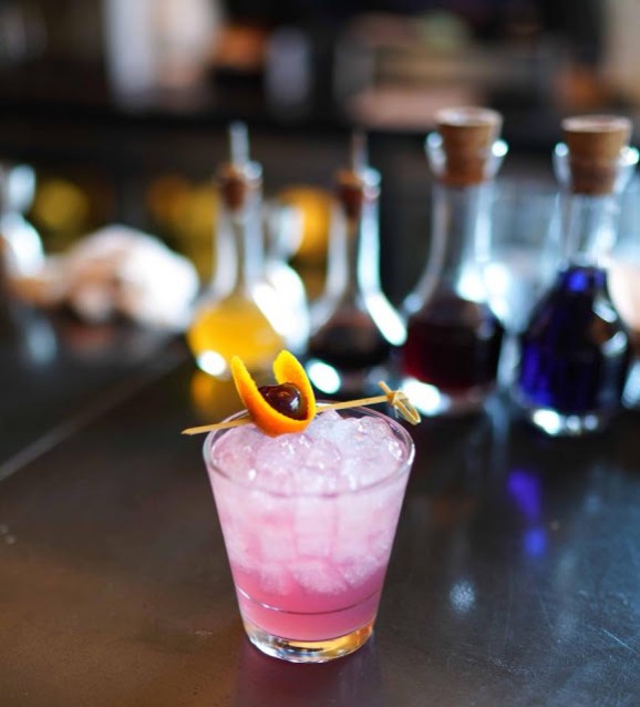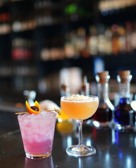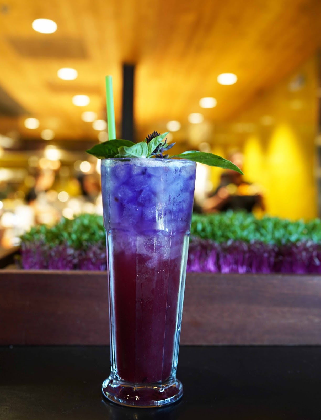The grandiose Tuk Tuk Sling (on the regular menu) is a beautiful drink made of butterfly pea infused gin, benedictine, combier, cherry heering, pineapple, lime & blackberry.