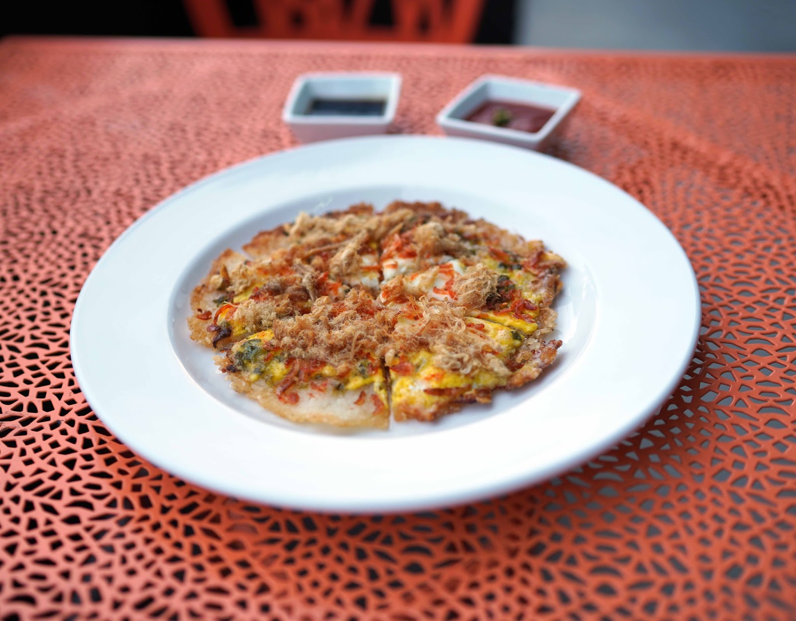Our table of four were in pure bliss after our first bite of the Mini Rice Pancakes! This heavenly dish has 7 savory cakes made from turmeric powder, ground pork, shrimp, whole mung-bean, drizzled with coconut sauce & house special sauce.