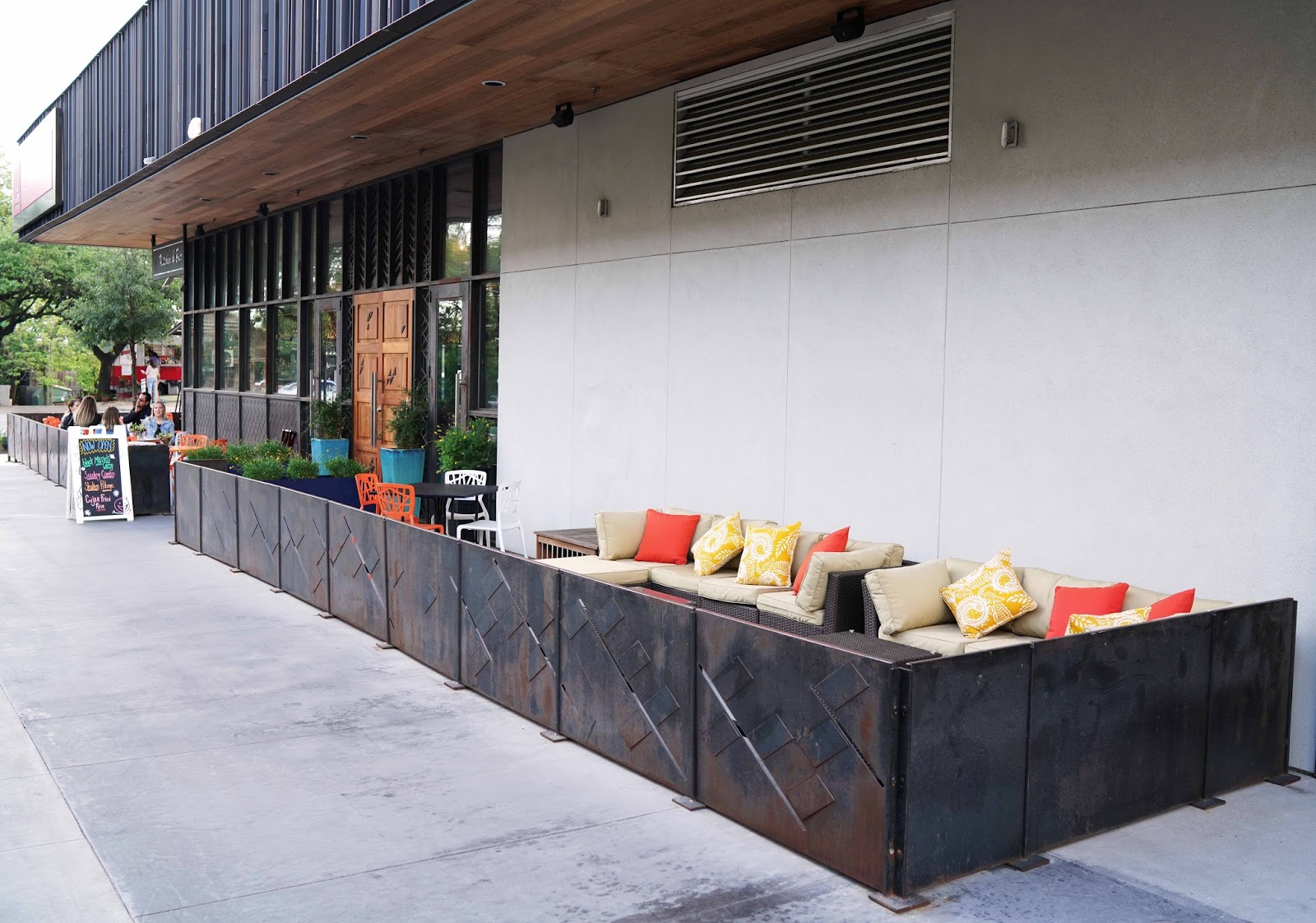 The space is open and beautiful with a vibrant welcoming patio while the dining room has cooler blue & silver tones. The dining room seating consists large booths, 4 tops that can easily be made into seating for 8-12, and a wrap around bar that extends to patio bar seating.