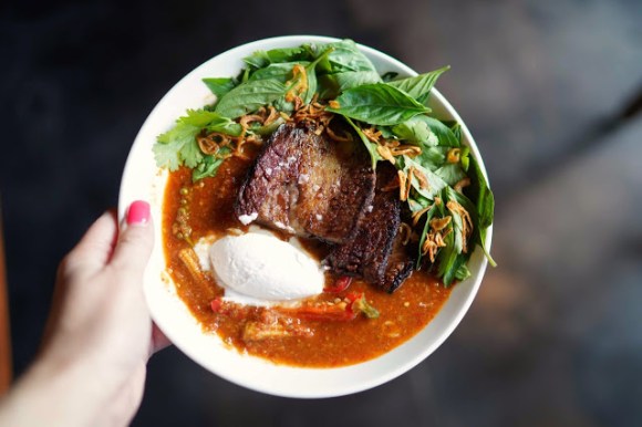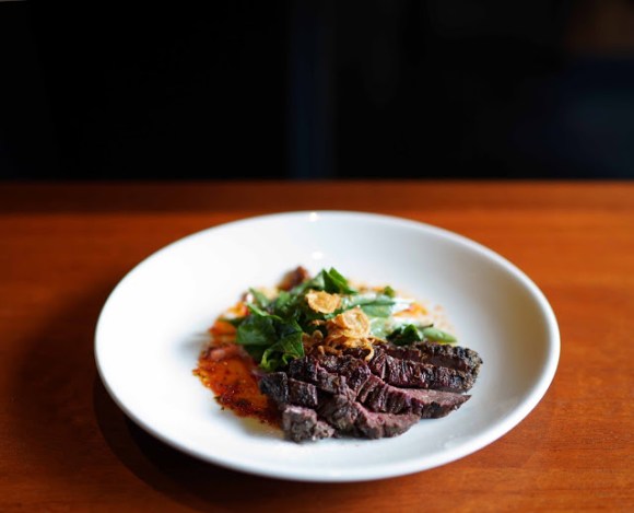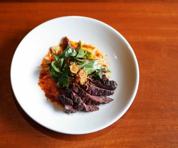 Tiger Cry may not be new but it is a crowd favorite and is at the top of my list! Tiger Cry has perfectly char-grilled hanger steak, plated with red chili nahm jim (dipping sauce), Fresno chili, nahm prik pao (Thai chili paste), toasted rice, and Thai Basil. I love the aromatic Thai basil and each flavor perfectly compliments each other. And bonus, this dish is gluten free!