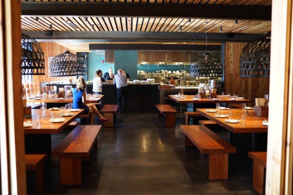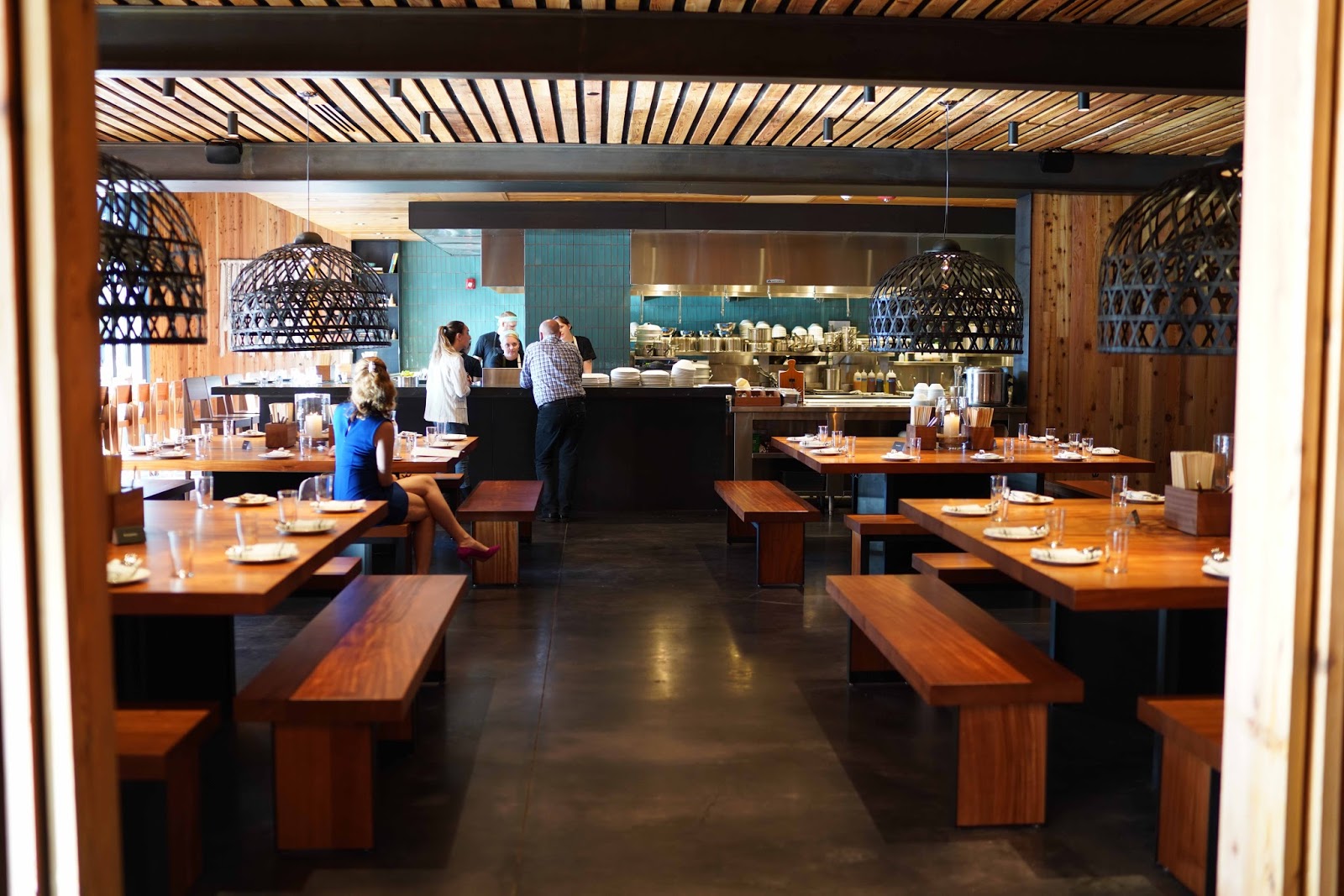 We had the opportunity to dine in last week during the friends and family preview night and are simply blown away with the gorgeous new restaurant. We were greeted by their signature neon lotus flower and the customized look and touches of Austin-based Michael Hsu. The new Sway location has similar features to the first location with handsome wooden communal tables, a welcoming bar/lounge and basket light fixtures as well as an open kitchen and window ledge with bar seating. The restaurant has a 20-seat bar, plus high top tables for group happy hours and tastings. There is also patio seating surrounded by custom planters and lush foliage creating an oasis on Rock Rose.