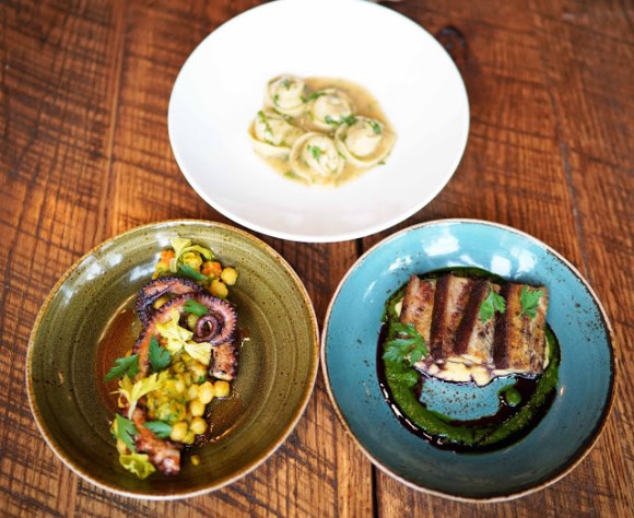 | Tortellini, Charred Octopus and Pork Belly at MIA Italian Tapas & Bar |