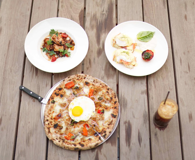 All eyes on that pie! I loved the crisp yet thin crust of their delectable Brunch Pizza. The Brunch Pizza has savory pork sausage, roasted peppers, red onion, gooey mozzarella, thyme and playful topped with an egg.