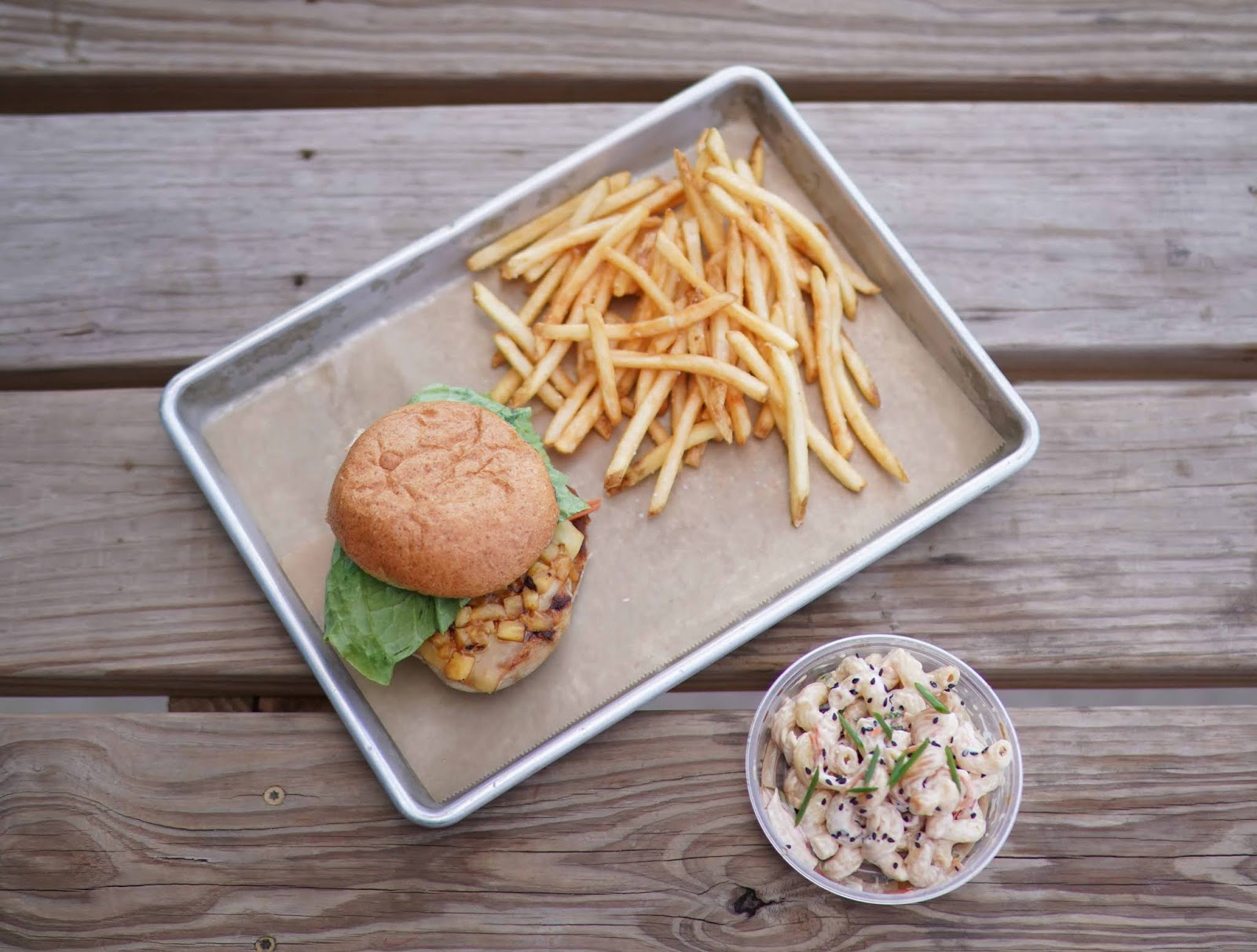 The Shaka Sandwich has refreshing flavors of grilled pineapple, House made teriyaki sauce and pickled veggie mix. The Island Mac Salad also has that delightful delicious teriyaki sauce! Come check out the new menu offerings and a side a crispy fries is always a must.