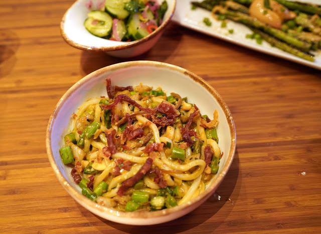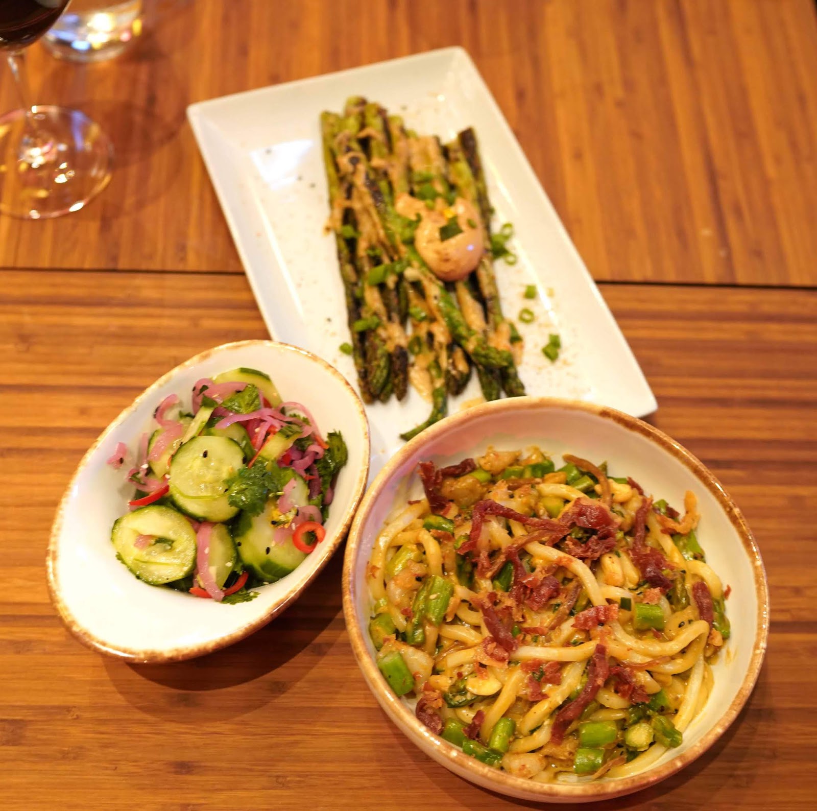 | Udon, Asparagus and Cucumbers at Tanuki |