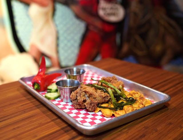 Lost in Translation Chinese Chicken & Waffles was a fun dish of crispy fried chicken thighs, sweet potato-scallion bubble waffle, bourbon maple syrup, charred peach hot sauce, charred scallions
