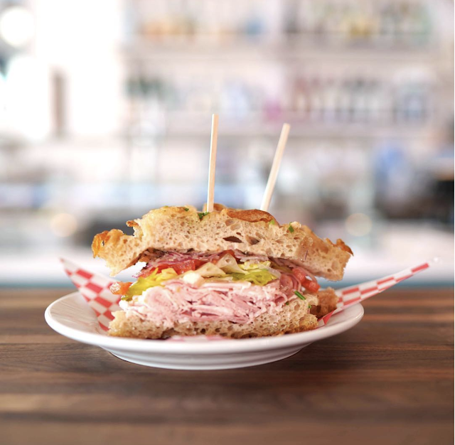 This layered goodness is their generously portioned Prosciutto Cotto & Mozzarella sandwich with fresh tomato on their fresh perfectly baked focaccia.