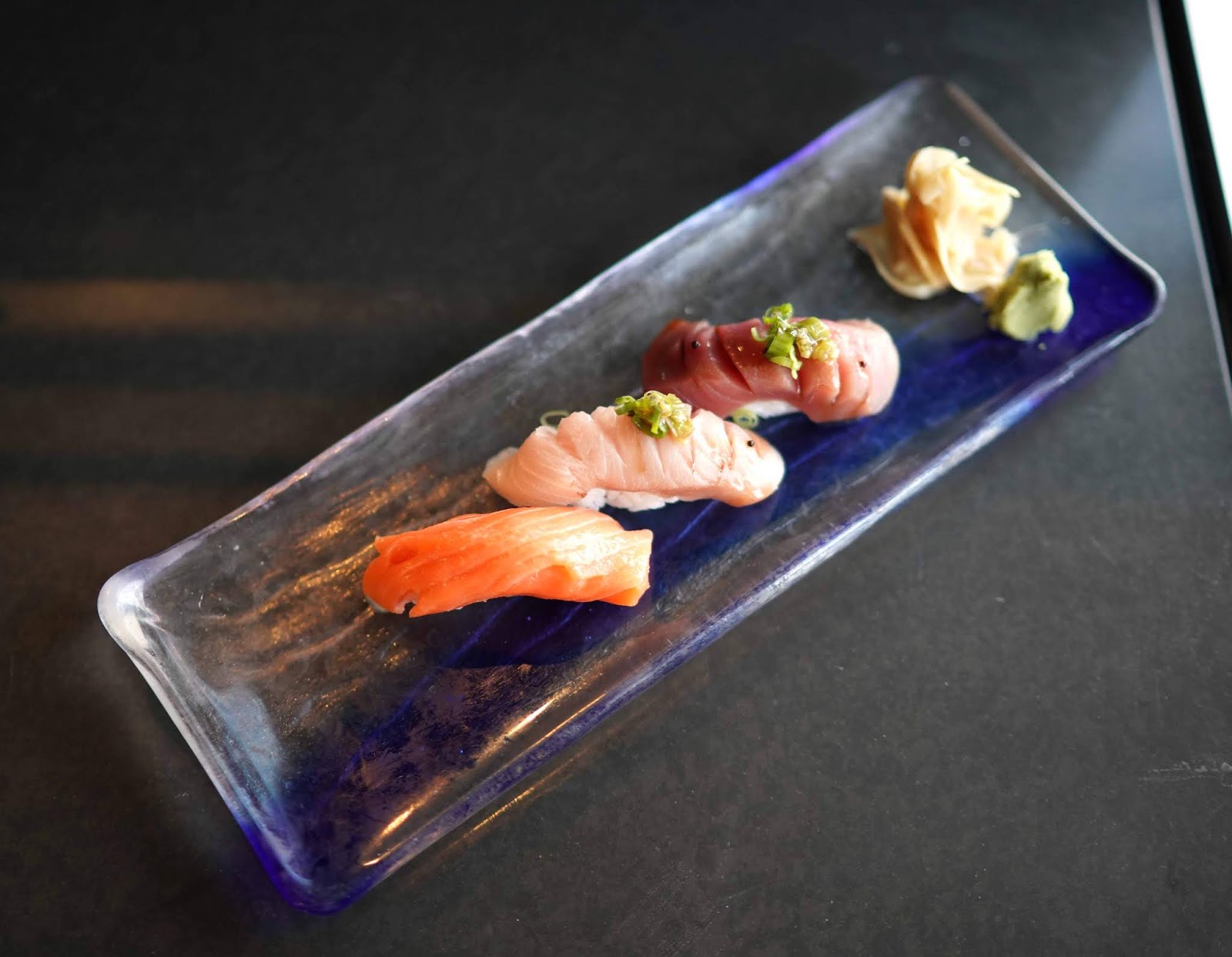 | Bluefin Tuna, Hamachi and Ora King Salmon Nigiri at Sakura |