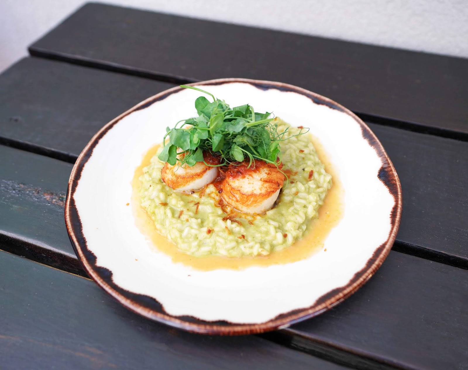 We ordered the impeccable seared Scallops with a mint pea Risotto which beautifully showcases the District team\’s creativity.