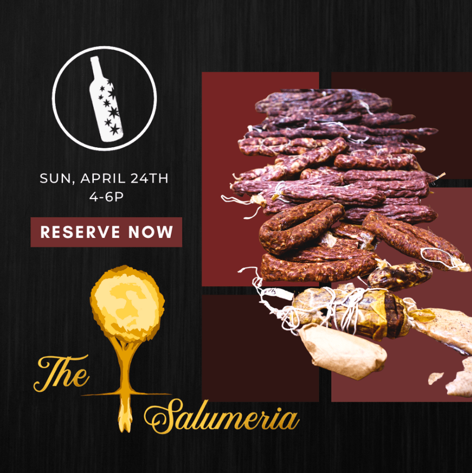 Join Wine for the People on Sunday, April 24th, 4-6p for a special evening featuring cured meats from The Salumeria paired with some of their most limited wines by Rae Wilson. With traditions and recipes passed down for generations, The Salumeria raises their own heritage breed pigs and produces some of the most sought after cured meats in the region. You’ll experience an intimate tasting with owner, Anthony Pedonesi to hear their story of a family tradition and ethical production.
