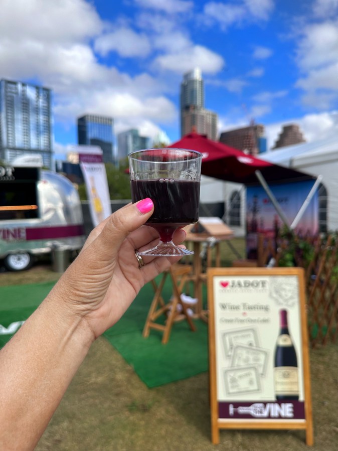I started off the day with BBQ from @heb @mainstreatfoodhall as well as a taste of wine then headed over to the adorable wine airstream for a wine tasting + reading with @louisjadot. @dobbeswinery was pouring their sensational wines (love their Pinot Noir wines especially).