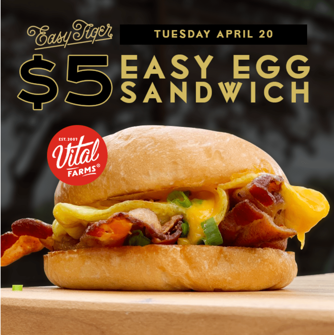 Easy Tiger Launches Easy Egg Sandwich in Partnership with Vital Farms